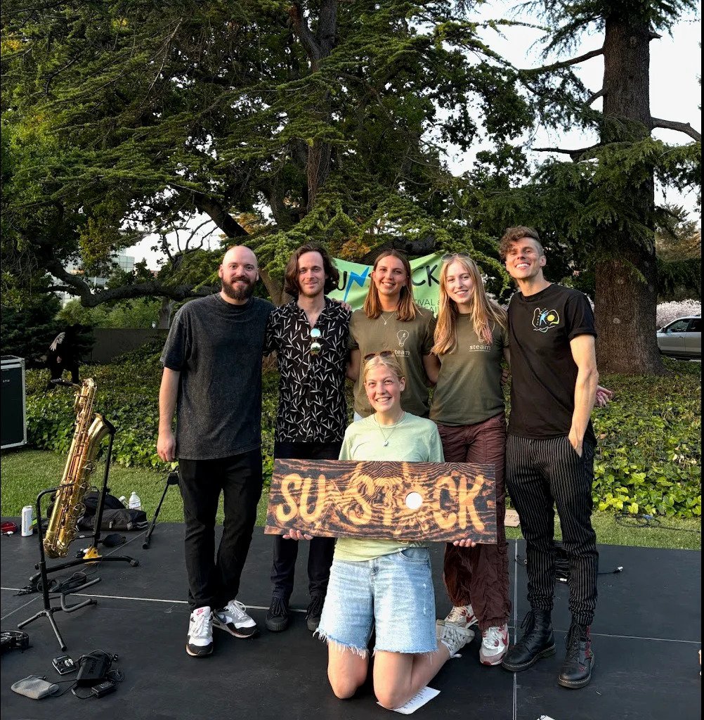 Trapdoor Social founded the Sunstock Solar Festival, which started in Los Angeles. UC Berkeley students, shown here with Trapdoor Social in April, now run the festival. (Credit: ASUC Sustainability Team)